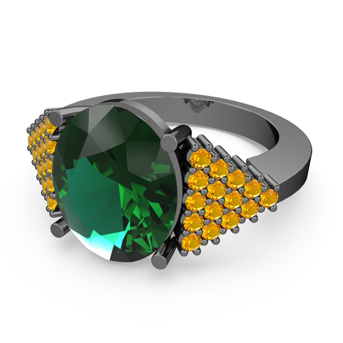 Yeşil kuvars ve sitrin 925 ayar siyah rodyum kaplama gümüş yüzük