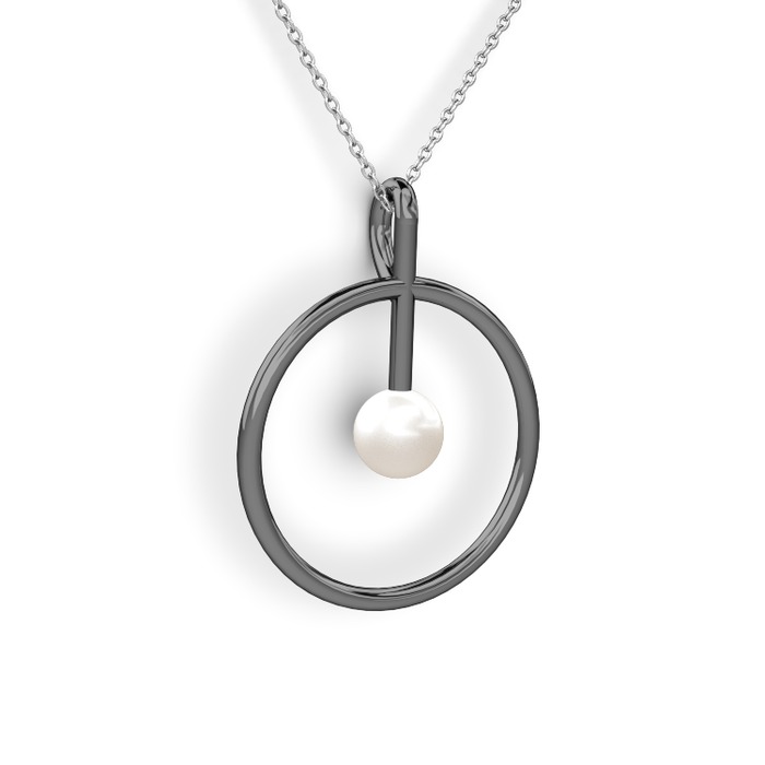 Inci 925 ayar siyah rodyum kaplama gümüş kolye (40 cm beyaz altın rolo zincir)