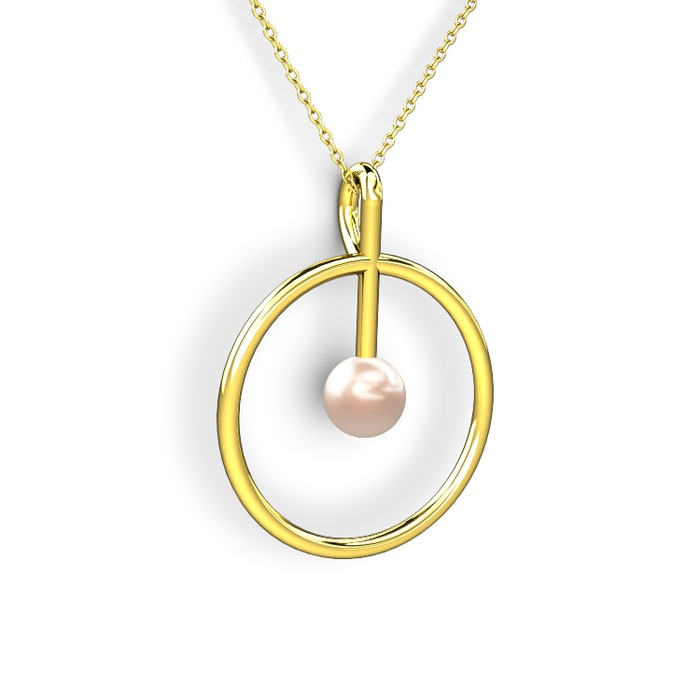 Pembe inci 14 ayar altın kolye (40 cm gümüş rolo zincir)
