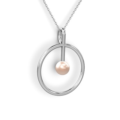 Pembe inci 14 ayar beyaz altın kolye (40 cm gümüş rolo zincir)