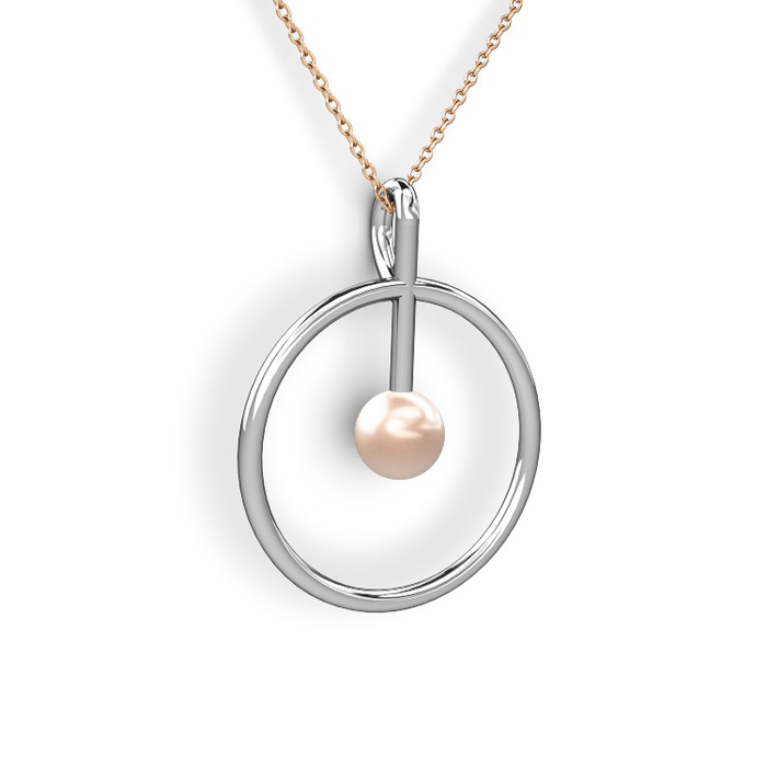 Pembe inci 14 ayar beyaz altın kolye (40 cm rose altın rolo zincir)