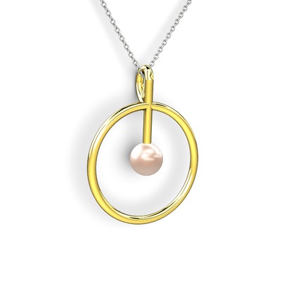 Pembe inci 18 ayar altın kolye (40 cm beyaz altın rolo zincir)