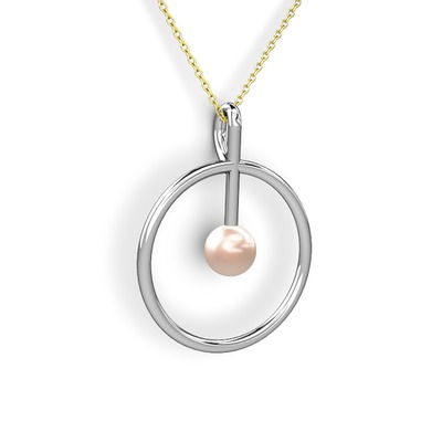 Pembe inci 18 ayar beyaz altın kolye (40 cm gümüş rolo zincir)