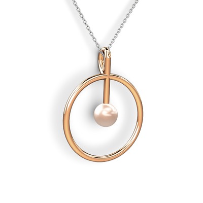 Pembe inci 925 ayar rose altın kaplama gümüş kolye (40 cm beyaz altın rolo zincir)