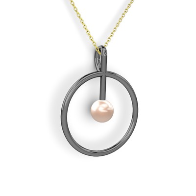 Pembe inci 925 ayar siyah rodyum kaplama gümüş kolye (40 cm altın rolo zincir)