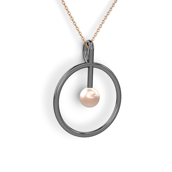 Pembe inci 925 ayar siyah rodyum kaplama gümüş kolye (40 cm rose altın rolo zincir)