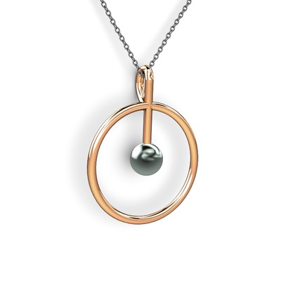Siyah inci 14 ayar rose altın kolye (40 cm gümüş rolo zincir)