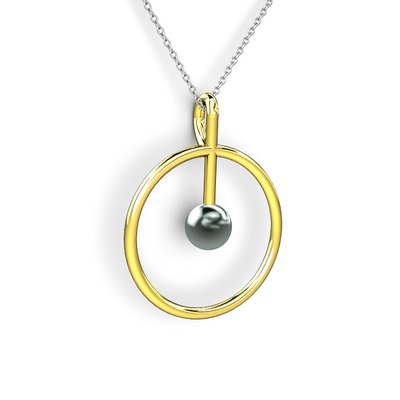Siyah inci 18 ayar altın kolye (40 cm gümüş rolo zincir)