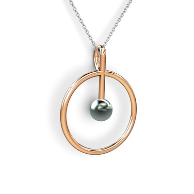 Siyah inci 8 ayar rose altın kolye (40 cm beyaz altın rolo zincir)