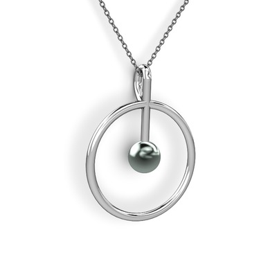 Siyah inci 925 ayar gümüş kolye (40 cm gümüş rolo zincir)