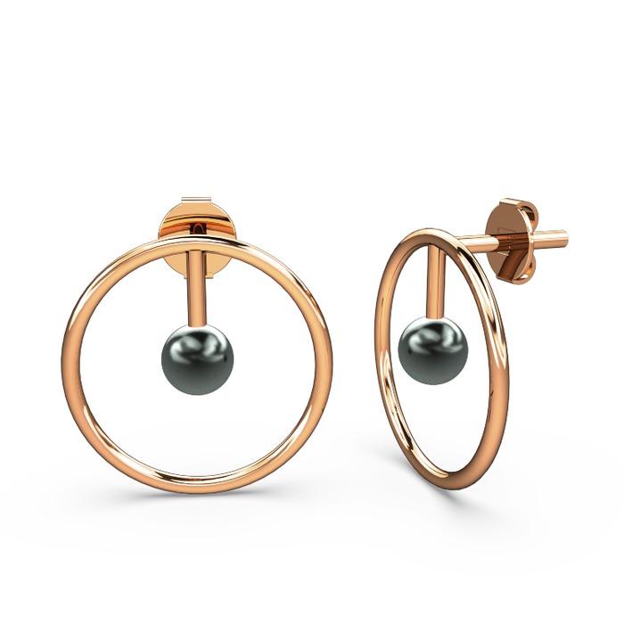 Siyah inci 925 ayar rose altın kaplama gümüş küpe