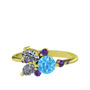 Akuamarin, beyaz zirkon ve ametist 18 ayar altın yüzük