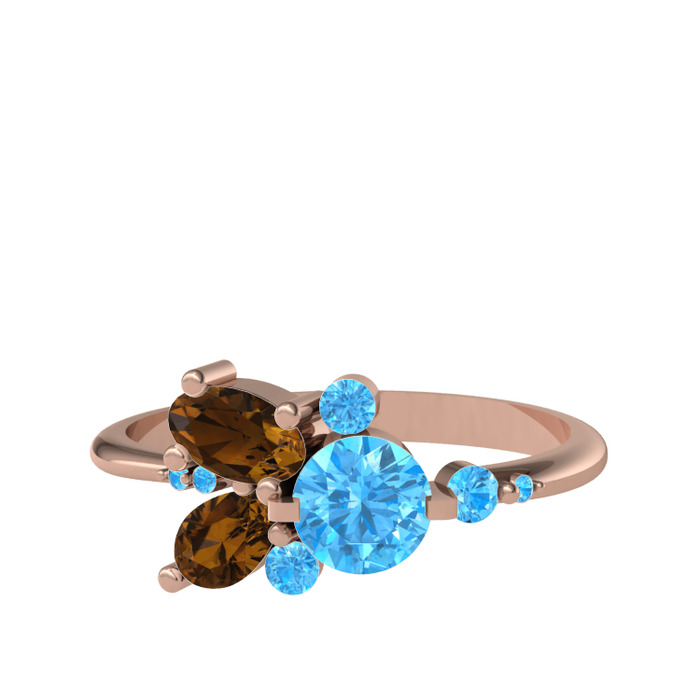 Akuamarin ve dumanlı kuvars 925 ayar rose altın kaplama gümüş yüzük