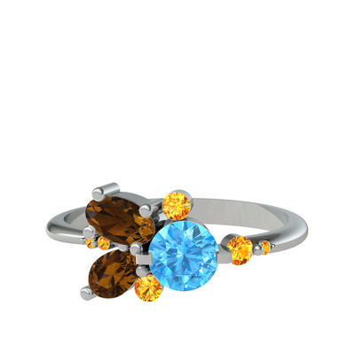 Akuamarin, dumanlı kuvars ve sitrin 14 ayar beyaz altın yüzük