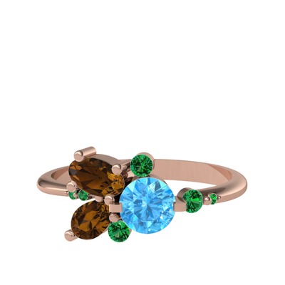 Akuamarin, dumanlı kuvars ve yeşil kuvars 925 ayar rose altın kaplama gümüş yüzük