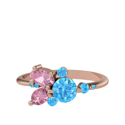 Akuamarin ve pembe kuvars 18 ayar rose altın yüzük