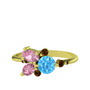 Akuamarin, pembe kuvars ve dumanlı kuvars 925 ayar altın kaplama gümüş yüzük