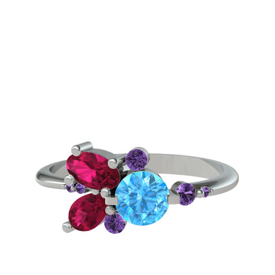 Akuamarin, rodolit garnet ve ametist 8 ayar beyaz altın yüzük