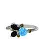 Akuamarin, siyah zirkon ve peridot 8 ayar beyaz altın yüzük