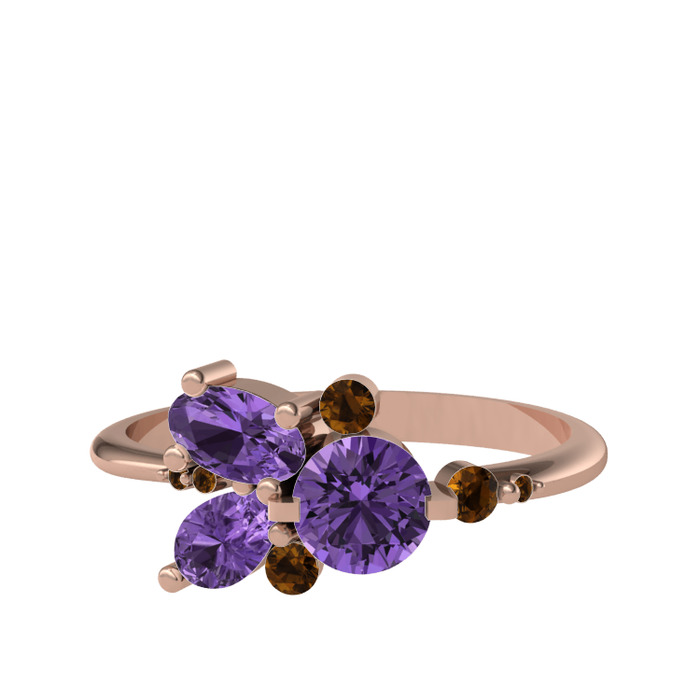 Ametist ve dumanlı kuvars 18 ayar rose altın yüzük