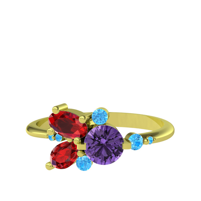 Ametist, garnet ve akuamarin 925 ayar altın kaplama gümüş yüzük