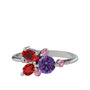 Ametist, garnet ve pembe kuvars 18 ayar beyaz altın yüzük