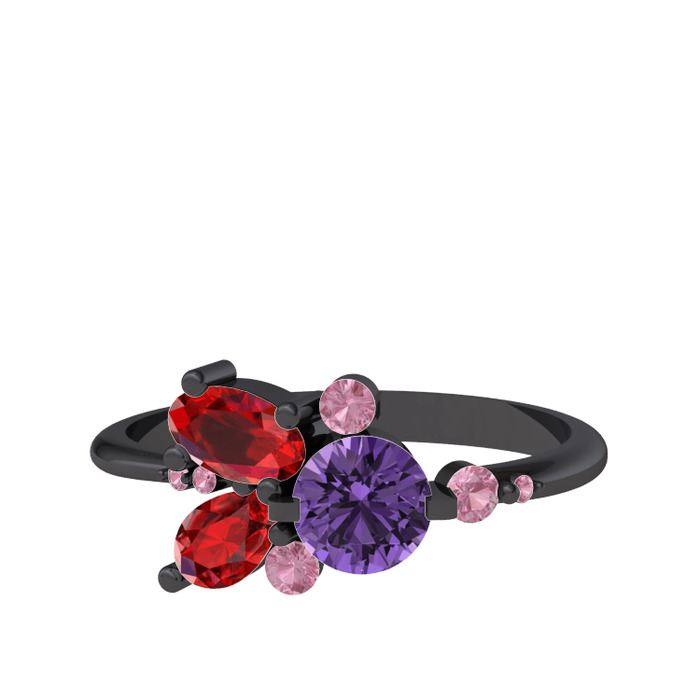 Ametist, garnet ve pembe kuvars 925 ayar siyah rodyum kaplama gümüş yüzük