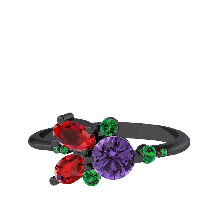 Ametist, garnet ve yeşil kuvars 925 ayar siyah rodyum kaplama gümüş yüzük