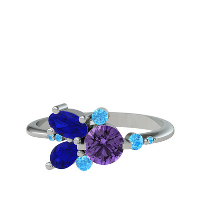 Ametist, lab safir ve akuamarin 8 ayar beyaz altın yüzük