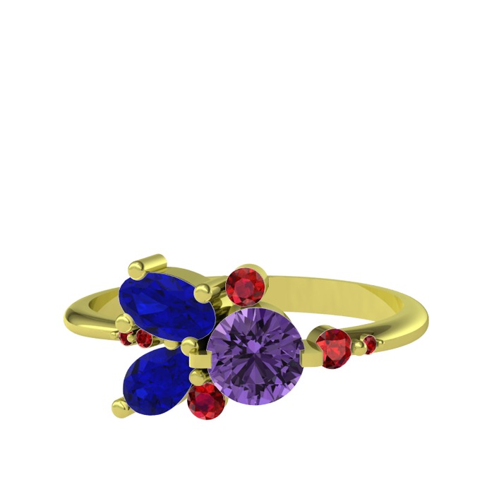 Ametist, lab safir ve garnet 18 ayar altın yüzük