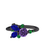 Ametist, lab safir ve yeşil kuvars 925 ayar siyah rodyum kaplama gümüş yüzük