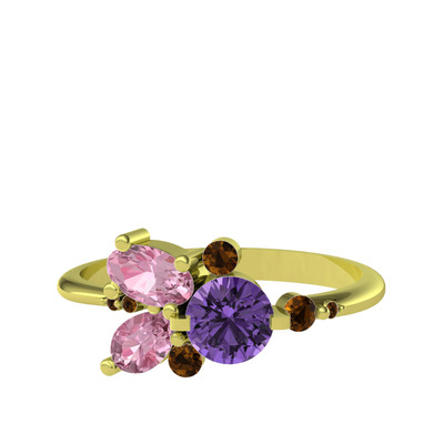 Ametist, pembe kuvars ve dumanlı kuvars 14 ayar altın yüzük