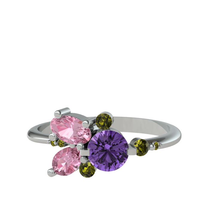 Ametist, pembe kuvars ve peridot 8 ayar beyaz altın yüzük