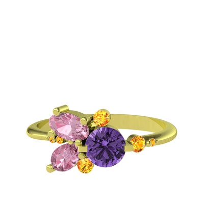 Ametist, pembe kuvars ve sitrin 18 ayar altın yüzük