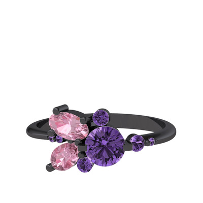 Ametist ve pembe kuvars 925 ayar siyah rodyum kaplama gümüş yüzük
