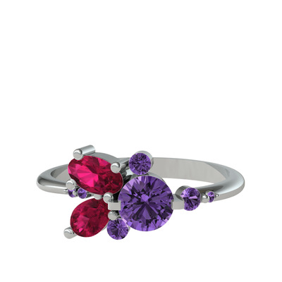 Ametist ve rodolit garnet 14 ayar beyaz altın yüzük