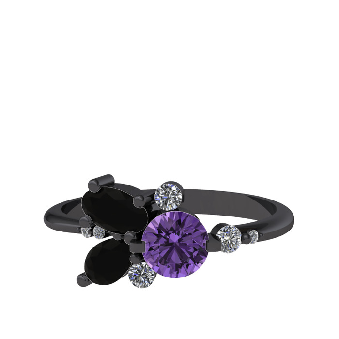 Ametist, siyah zirkon ve beyaz zirkon 925 ayar siyah rodyum kaplama gümüş yüzük
