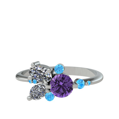 Ametist, swarovski ve akuamarin 8 ayar beyaz altın yüzük