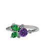 Ametist, yeşil kuvars ve beyaz zirkon 8 ayar beyaz altın yüzük
