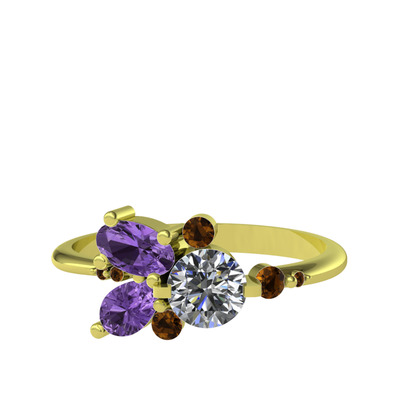 Beyaz zirkon, ametist ve dumanlı kuvars 14 ayar altın yüzük