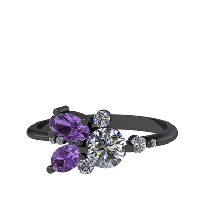 Beyaz zirkon ve ametist 925 ayar siyah rodyum kaplama gümüş yüzük