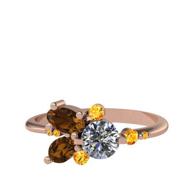 Beyaz zirkon, dumanlı kuvars ve sitrin 18 ayar rose altın yüzük