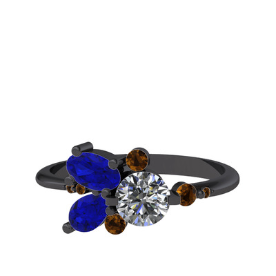 Beyaz zirkon, lab safir ve dumanlı kuvars 925 ayar siyah rodyum kaplama gümüş yüzük
