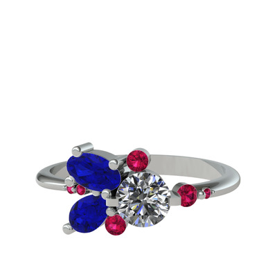 Beyaz zirkon, lab safir ve rodolit garnet 925 ayar gümüş yüzük