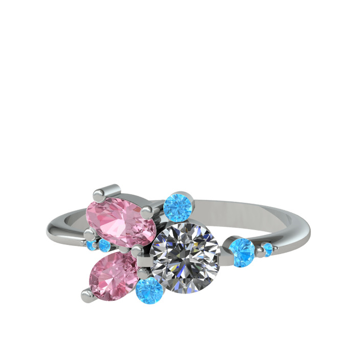 Beyaz zirkon, pembe kuvars ve akuamarin 925 ayar gümüş yüzük