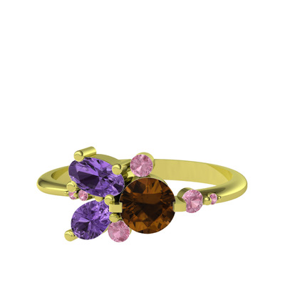 Dumanlı kuvars, ametist ve pembe kuvars 18 ayar altın yüzük
