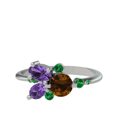 Dumanlı kuvars, ametist ve yeşil kuvars 18 ayar beyaz altın yüzük
