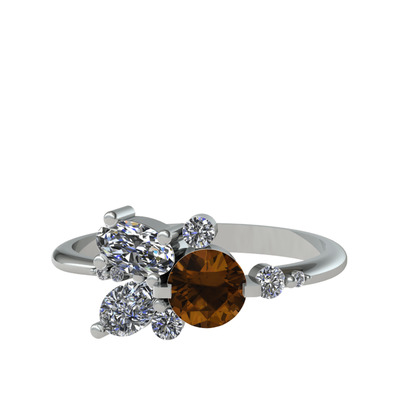 Dumanlı kuvars ve beyaz zirkon 8 ayar beyaz altın yüzük