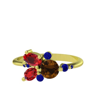 Dumanlı kuvars, garnet ve lab safir 8 ayar altın yüzük