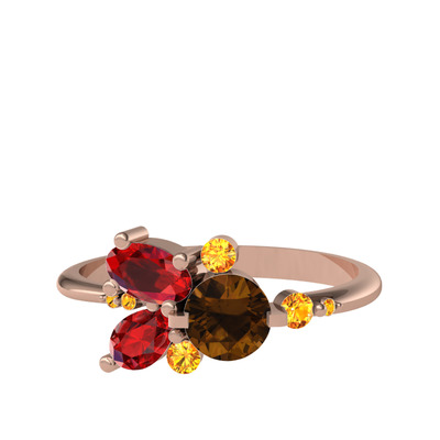 Dumanlı kuvars, garnet ve sitrin 18 ayar rose altın yüzük